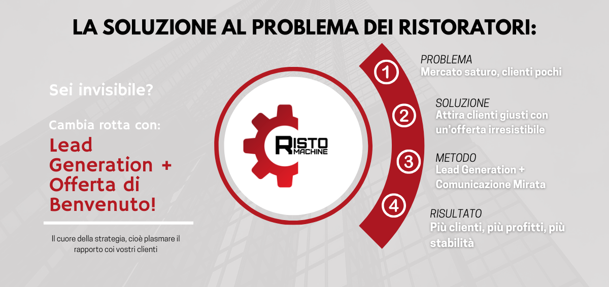La lead generation serve a intercettare il pubblico giusto. Il nostro obiettivo è far arrivare nel tuo ristorante chi apprezzerà davvero l’esperienza che offri. L’offerta di benvenuto diventa così il “magnete” che convince i clienti a fare il primo passo.