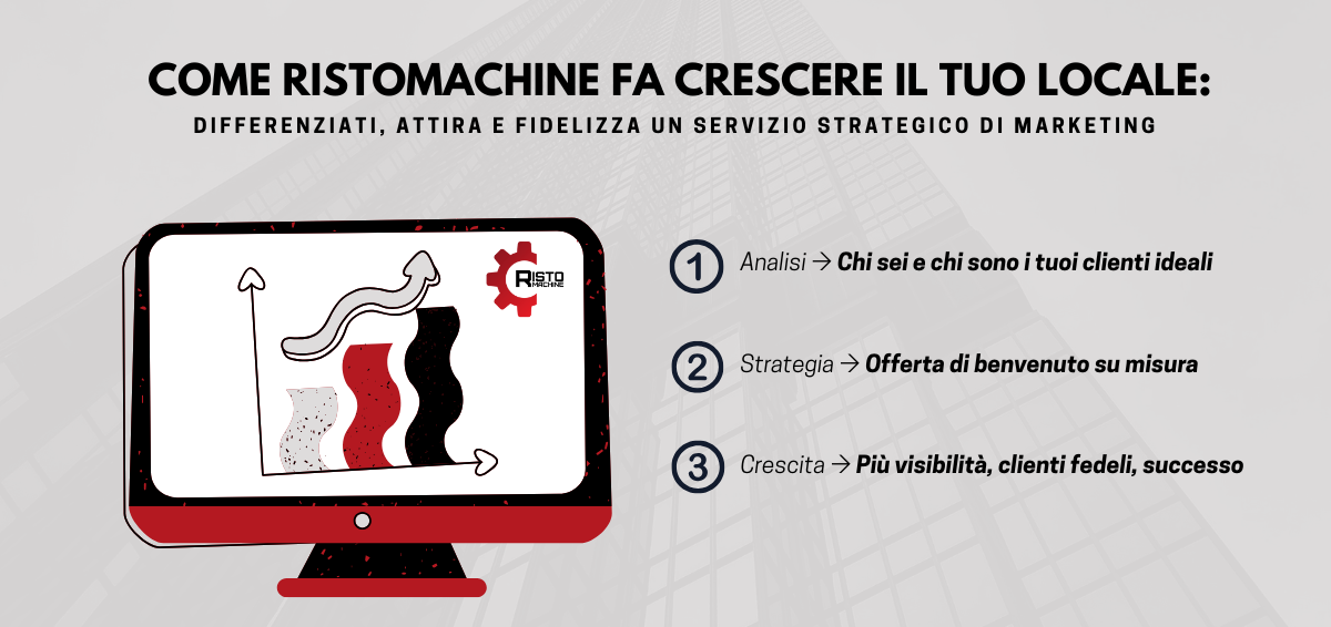 Con la giusta strategia e un partner competente, il vostro locale può emergere dall’anonimato. L’offerta di benvenuto, costruita su misura per il vostro target, è il primo passo per convertire curiosi in clienti abituali e aumentare stabilmente i profitti.